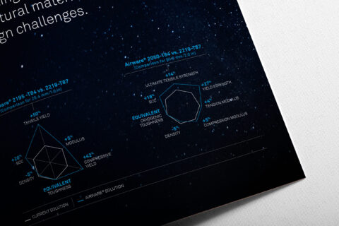 Dès lors, comment communiquer lorsqu’une avancée technologique devient la norme. Il faut recréer chez Airware® le rêve technologique. Airware® vole maintenant sur plusieurs programmes prestigieux d’Airbus, Boeing, Bombardier, Embraer, SpaceX, Blue Origin,Lockheed Matin, NASA, que ce soient des pièces de structure d’avion ou de lanceurs spatiaux. Ces développements donnent à la marque un nouvel argument sans précédent et démontre que l’aluminium devient un matériau de choix dans un secteur où l’exigence est ultime.