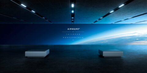 Aluminium high-tech, Airware® souligne son avancée technologique et la nouvelle quête qui s’offre à elle. Désormais la marque propose un matériau ultra high-tech sélectionné pour des applications aéronautiques et spatiales. Grâce à un design léger et technique, en choisissant des images de ciel sans engins et en faisant passer la marque du ciel à l’espace, la marque affiche sa force innovatrice.