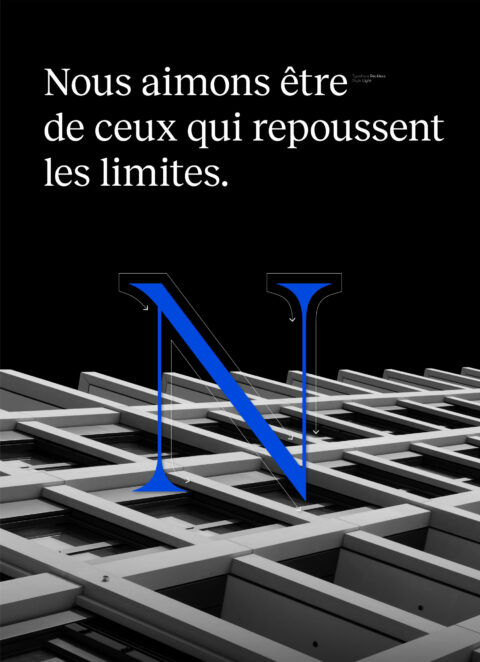 Une identité forte qui souligne l’amour de l’ingénierie de ce bureau. Un état d’esprit dynamique et volontaire qui se décline en identité, des textes et des phrases qui transmettent un état d’esprit marquant et des réalisations atypiques. La stratégie iconographique est faite pour mettre en valeur le portfolio et les individus qui forment une équipe forte.